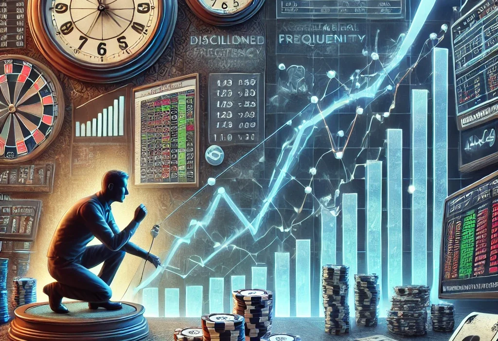 In financial markets, the optimal frequency of investment decisions varies across different environments and may change over time, reflecting the need for flexible strategies in betting markets as well (van Loon, 2021). The Kelly Criterion, a widely studied approach to bet sizing, advocates for larger wagers that maximize long-term wealth growth but comes with increased short-term risk (MacLean et al., 2010). This trade-off highlights the importance of balancing bet frequency with risk tolerance. Additionally, newer betting markets may offer temporary inefficiencies that skilled bettors can exploit (Woodland & Woodland, 2001), though such opportunities often diminish as markets mature. Decision-making in gambling contexts is influenced by multiple psychological and economic factors, with individuals often prioritizing gain frequency over expected long-term outcomes (Horstmann et al., 2012).